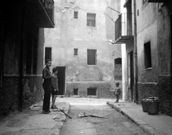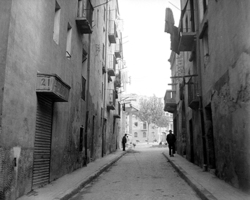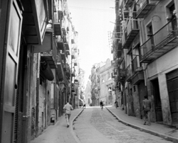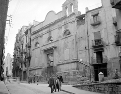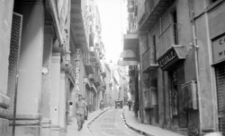 "Carrer Cavallers; a l'esquerra les façanes dels cinemes Granados i Victoria"
