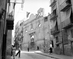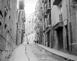 "Carrer Cavallers; a la dreta, inici del carrer de la Companyia; al fons l'església de Sant Andreu"