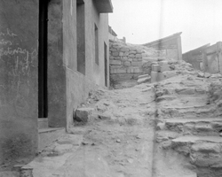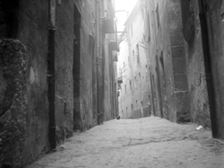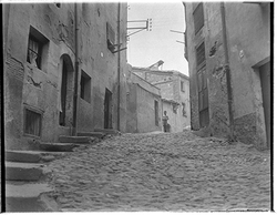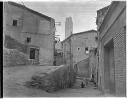 "Carrer Borràs, des del Carrer Rejolar; al fons el campanar de la Seu Vella"