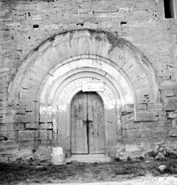 "Castell dels templers de Santa Maria de Gardeny; porta principal de l'església; zona nord"
