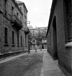 "Carrer Bisbe Torres des del Carrer Governador Montcada; al fons el xamfrà amb el Carrer Ballester"