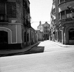 "Carrer Acadèmia, xamfrà amb l'Avinguda de Catalunya; al fons edifici de les Germanetes del Pobres (Residència Juana Jugán)"