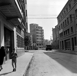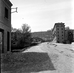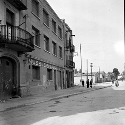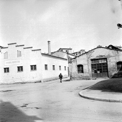 "Carrer Lluís Companys (Víctor Pradera, del moment); edifici annex a l'Escorxador on hi havia el parc dels bombers"