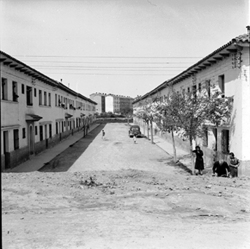 "Pujada del Carrer de Saturn; a l'esquerra l'inici dels carrers Lluís Milet i Manuel de Falla"