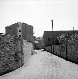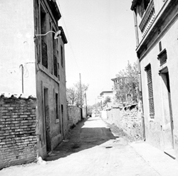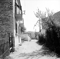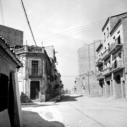 "Carrer de les Torres de Sanuí, des del Carrer Bisbe Martín Ruano; al fons el Carrer Balmes; a la dreta es veu la tanca de l’antic Asilo Borràs, posteriorment Jardins de Pau Casals; al fons, comença el Carrer del Camp de Mart"
