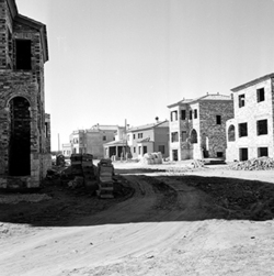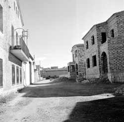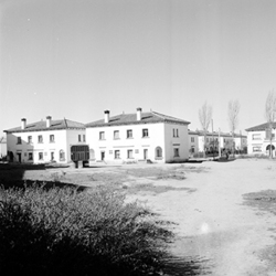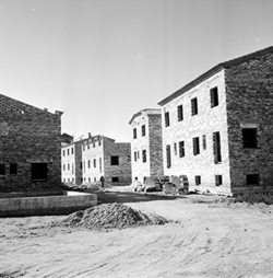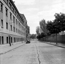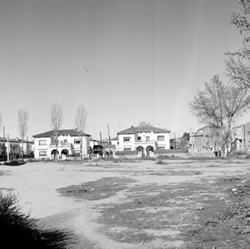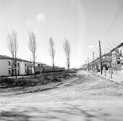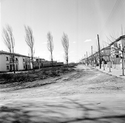 "Grup d’habitatges unifamiliars que en l’època es conegué amb el nom de Grupo 3 de abril ; zona al voltant del Carrer Magí Morera i de l’actual Plaça del 8 de Març, amb el futur Passeig de Ronda al fons"