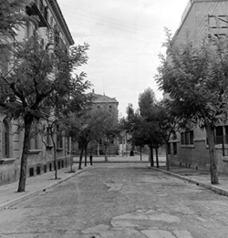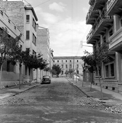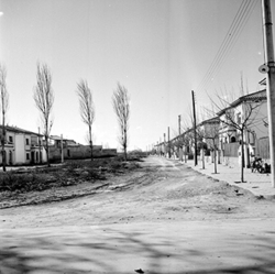 "Grup d’habitatges unifamiliars que en l’època es conegué amb el nom de Grupo 3 de abril ; futur Passeig de Ronda amb l’Avinguda Alcalde Rovira Roure, antiga carretera nacional 240, al fons"