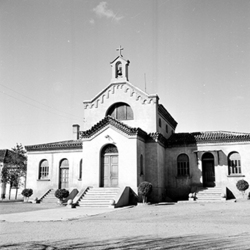 "Grup d’habitatges unifamiliars que en l’època es conegué amb el nom de Grupo 3 de abril ; Avinguda de Navarra, vista des de la carretera nacional núm. 240, actual Avinguda Alcalde Rovira Roure"