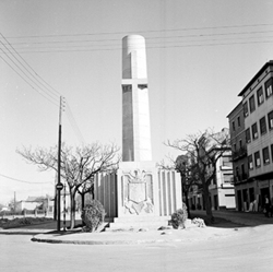 "Plaça de Ricard Viñes i començament de l’Avinguda de Prat de la Riba (General Mola); en primer terme s’hi veu el monòlit conegut com la Cruz de los Caídos\nRicard Vinyes"
