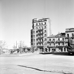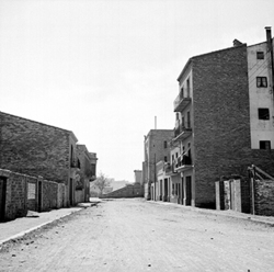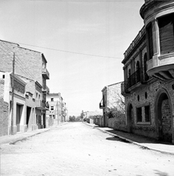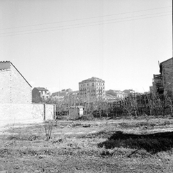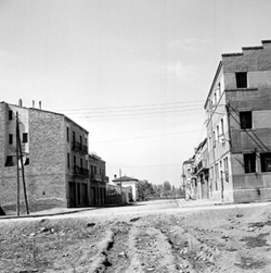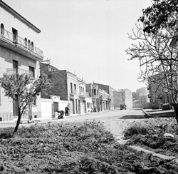"Entorns de la Plaça de Ricard Viñes; per la situació dels edificis del fons, podria correspondre a l’actual Avinguda de Doctor Fleming, o entorns\nRicard Vinyes"