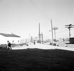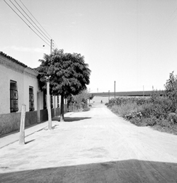 "Accés a la zona de Balàfia; Xamfrà Alfred Perenya (aleshores Carrer Eduardo Aunós, com es veu en el rètol del carrer) i Carrer de Sant Ruf i final de l’Avinguda Part de la Riba (aleshores General Mola)"