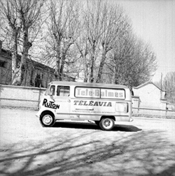 "Eduardo Velasco; concessionari oficial de vehicles Mercedes; furgoneta d’aquesta marca aparcada al Carrer Santa Cecília, al costat dels Camps Elisis; barri de Cappont; duu publicitat de Teleavia , iTele Balmes ; marca i botiga d'electrodomèstics, al Carrer Balmes de Lleida"