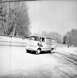 "Eduardo Velasco; concessionari oficial de vehicles Mercedes; furgoneta d’aquesta marca aparcada al Carrer Santa Cecília, al costat dels Camps Elisis, dels quals es veu una paret del Pavelló Antorxa; barri de Cappont; duu publicitat de Teleavia , iTele Balmes ; marca i botiga d'electrodomèstics, al Carrer Balmes de Lleida"