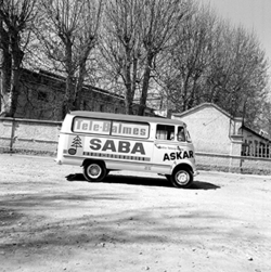 "Eduardo Velasco; concessionari oficial de vehicles Mercedes; furgonetes d’aquesta marca, i de la marca DKW, a l’interior dels tallers, al Carrer de Santa Cecília; barri de Cappont"