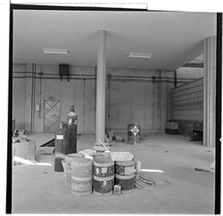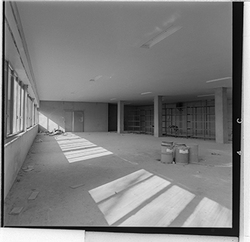 "Eduardo Velasco; concessionari oficial de vehicles Mercedes; construcció dels nous tallers, als carrers de Santa Cecília, Eduardo Velasco i Avinguda d'Alacant; vista interior"
