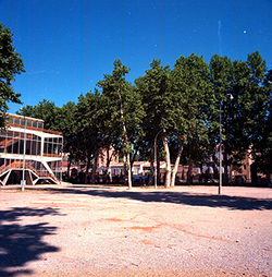 "Camps Elisis; barri de Cappont; part final del passeig central; a l’esquerra, es veu el dipòsit d’agua"