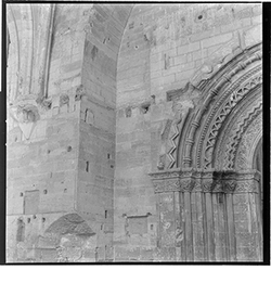 "Claustre de la Seu Vella; detall de la porta principal d’accés a la nau central"