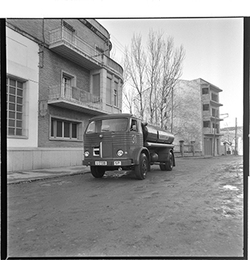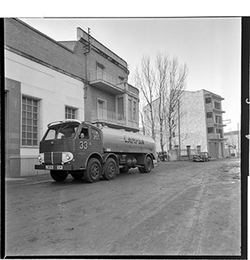 "Eduardo Velasco; camió de distribució de petrolis de CAMPSA, al Carrers de Santa Cecília, davant dels tallers de la marca"