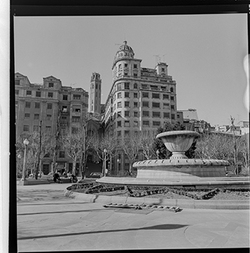 Vista dels jardins i la font monumental decorativa de la Plaça de la Pau