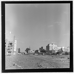 "Vista dels baluard del Rei i de la Punta del Diamant, de les muralles del Turó de la Seu Vella, des de la Plaça de la Sardana; al fons es veuen els dipòsits d’aigua"