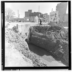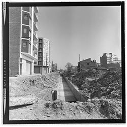 "Vista de les obres de canalització i cobriment de la Sèquia de Torres. La ubicació podria correspondre al sector proper als Camps Elisis."