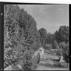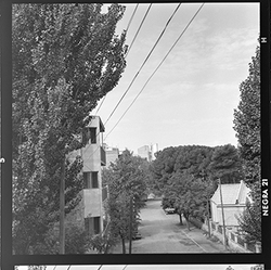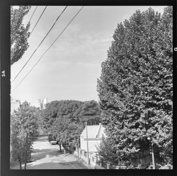"Vista del carrer de Santa Cecília amb els arbres dels Camps Elisis"