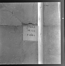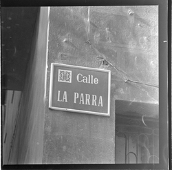 Detall d’una placa amb el nom del carrer: Calle de la Parra