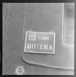 "Detall d’una placa amb el nom del carrer: Calle Botera , o Carrer Botera"