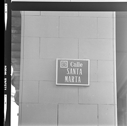 Detall d’una placa amb el nom del carrer: Calle Santa Marta