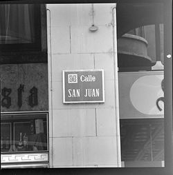 Detall d’una placa amb el nom del carrer: Calle San Juan