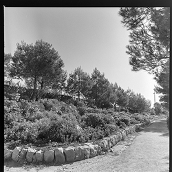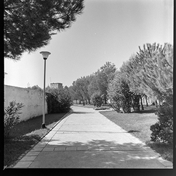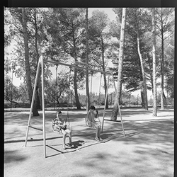 "Parque municipal Alcalde Pons , Les Basses; jardins i accés a la piscina per a ús exclusiu de les dones; PISCINA SEÑORAS segons rètol al fons"
