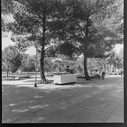 "Parque municipal Alcalde Pons , Les Basses; jardins, bosc; petit quiosc de venda de gelats"