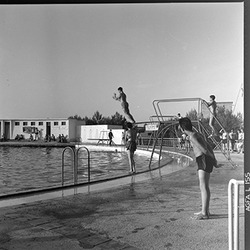 "Parque municipal Alcalde Pons , Les Basses; piscines amb banyistes"