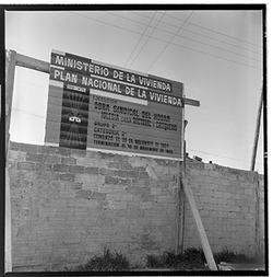 "Urbanització de La Mariola; rètol obres església de Sant Pau : ¨Ministerio de la Vivienda/ Plan Nacional de la Vivienda/ Ejecución Obra Sindical del Hogar/ iglesia, casa rectoral y catequesis/ Grup 2º / Comenzó el 30 de Noviembre de 1964 / Terminación el 30 de noviembre de 1965¨"