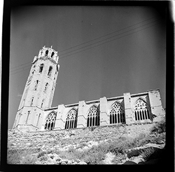 "Vista general del claustre i campanar de la Seu Vella des de la part alta del Canyeret"
