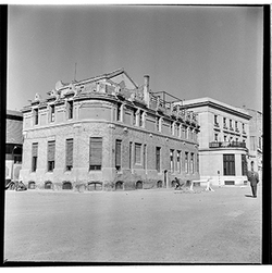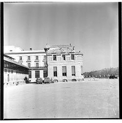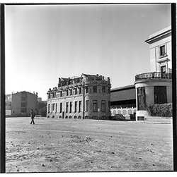 "Avinguda de Madrid; obres d’urbanització; edifici de l’antic Gota de Llet, Dispensari Municipal i Casa de Socorro, antigament també va fer funcions de laboratori municipal i el Banco d’España"