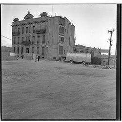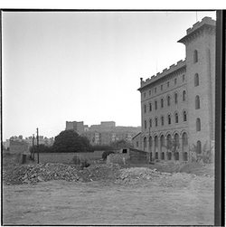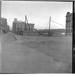 "Avinguda de Madrid; obres d’urbanització; edifici de l’antiga Impremta Sol i Benet, abans del seu enderrocament"