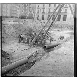 "Avinguda de Madrid; obres d’urbanització; excavació dels fonaments dels blocs de la futura Estació d’Autobusos de Lleida"