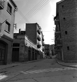 "Carrer de la Universitat i inici del Carrer de la Panera a l'esquerra"