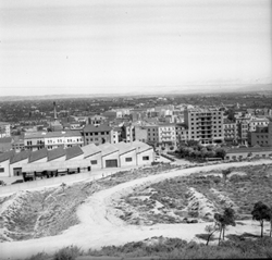 "El Camp de Mart, des del Turo de la Seu Vella; en primer terme la muralla de Sant Martí"