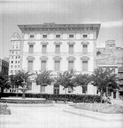 "Vista des del Pont Vell de la Rambla de Francesc Macià; al fons l'edifici del Govern Civil en construcció"