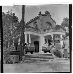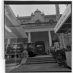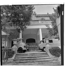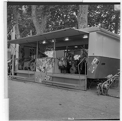 "Fira de Sant Miquel; 1963; estand de vehicles de l’empresa Eduardo Velasco S. A., concessionari oficial de la casa MERCEDES, al Xalet dels Camps Elisis"