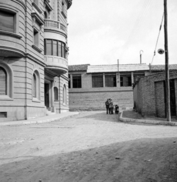 "Escales del Carrer de Ballester, des del Carrer Canonge González.\nRètol DORADOR G CASANOVAS DECORADOR"
