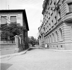 "Carrer Bisbe Torres, xamfrà amb el Carrer de Ballester; al fons el Carrer Governador Montcada"