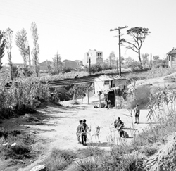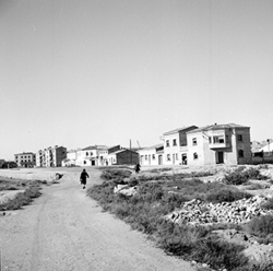 "Zona de Balàfia; terrenys annexos a la línia del ferrocarril, actualment soterrada i convertida en el segon Passeig de Ronda; al fons a la dreta estarien els carrers de la Cerdanya, Mossèn Pelegrí i Priorat; en primer terme el Carrer del Vallès"