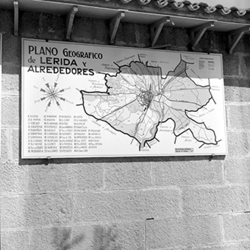 "Plano de Lérida y sus alrededores ; plànol de la ciutat de Lleida i les partides del voltant, penjat a la paret exterior de l’antiga caserna de Cavalleria, al Turó de la Seu Vella"