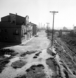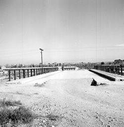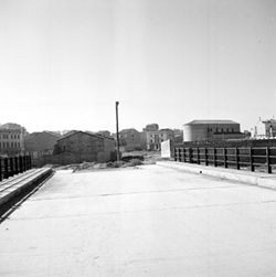 "Zona de Balàfia; terrenys annexos a la línia del ferrocarril, actualment soterrada i convertida en el segon Passeig de Ronda; Carrer dels Hospitalers de Sant Joan; al fons el pont de l’Avinguda Alcalde Recasens"