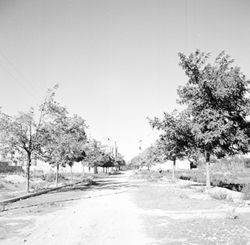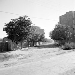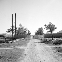 "Zona de Balàfia; zona de l’actual Carrer de les Corts Catalanes; al fons es veuen els habitatges unifamiliars, obra de l’arquitecte Casas Lamolla, els quals constitueixen el xamfrà entre els carrers Penedès i Bonifaci III"