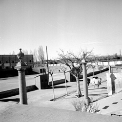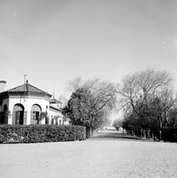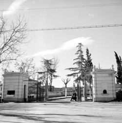 "Hospital Provincial de Santa Maria; porta principal d’accés des de la carretera d’Osca, actual Avinguda Rovira Roure"