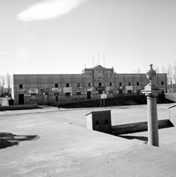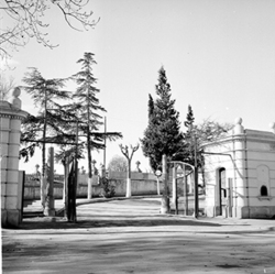 "Camp d'Esports; porta principal d’accés des de la carretera d’Osca, actual Avinguda Rovira Roure"